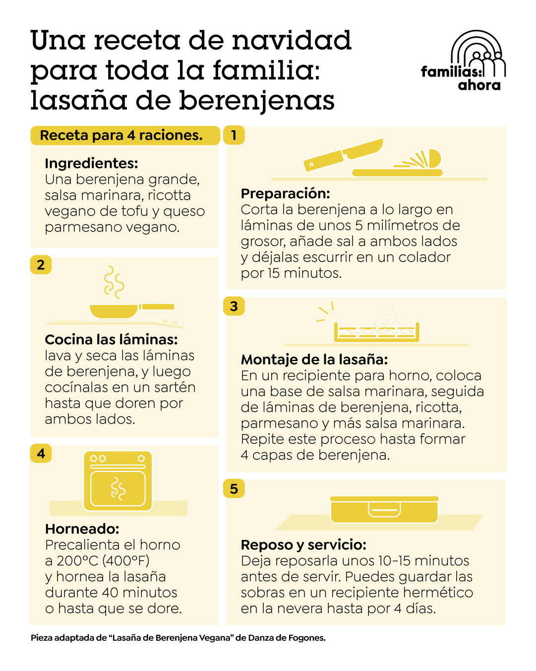 Desde “Familias:Ahora” te invitamos a realizar un plato distinto para tus celebraciones. Cuando cocinamos opciones veganas, nos aseguramos de que todas las personas de nuestra familia, independientemente de sus preferencias o necesidades alimenticias, puedan disfrutar de una comida deliciosa llena de amor. Comparte esta receta con tus familiares e invítalos a realizarla.